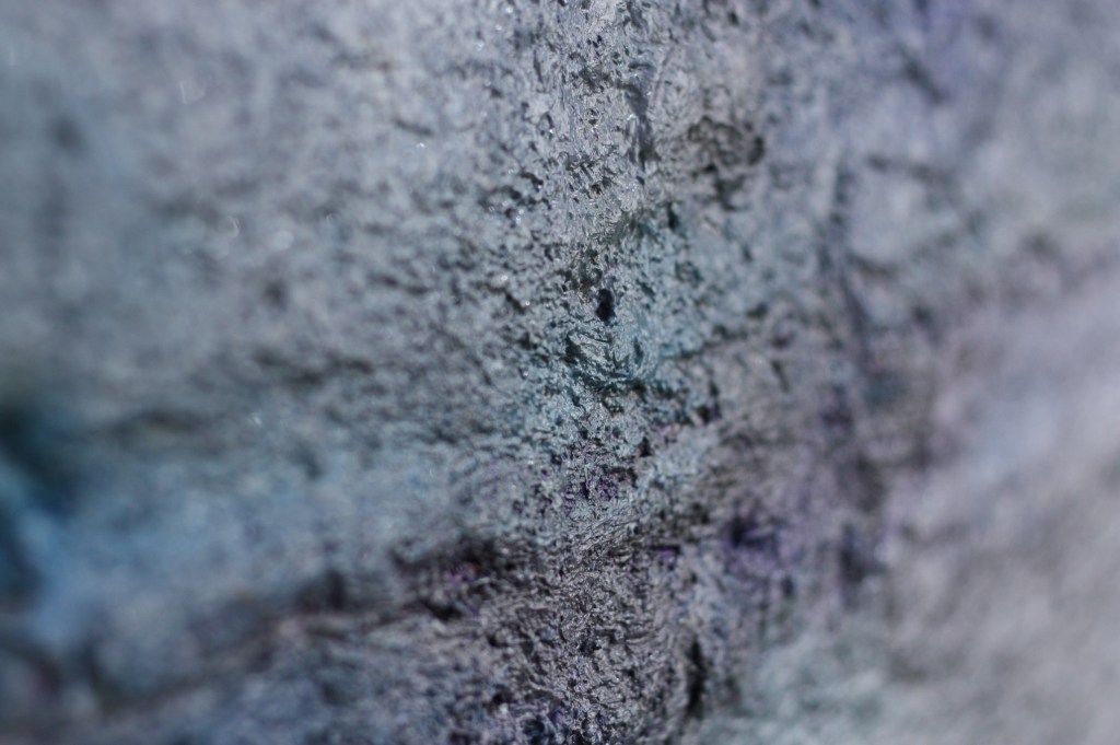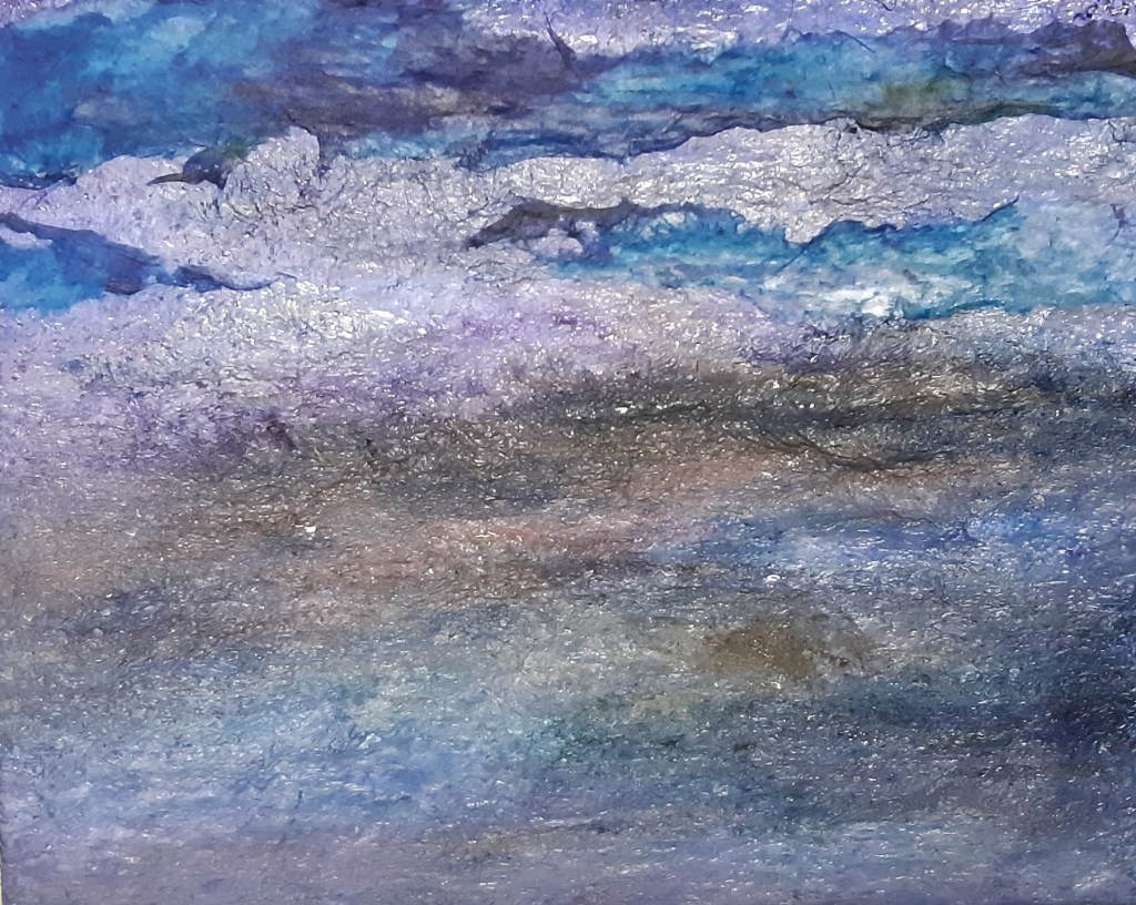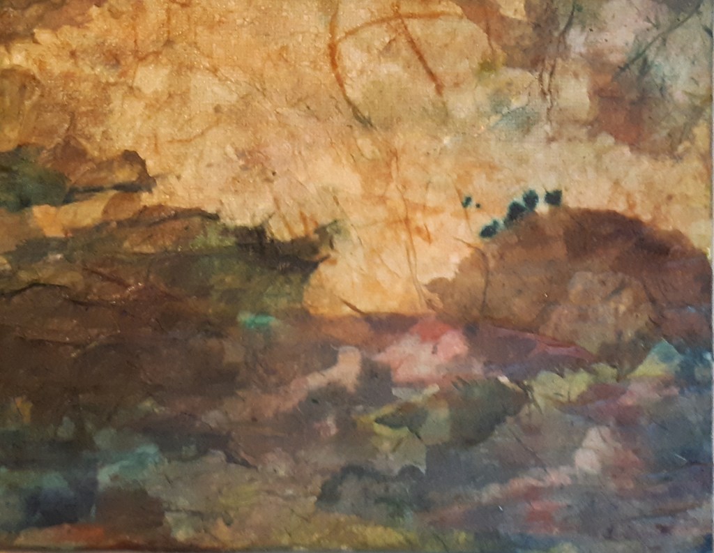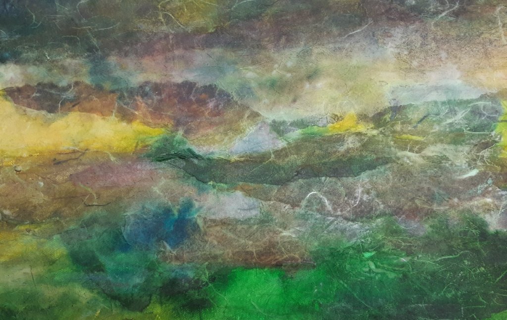 Entre deux matières: l’une sortie des tubes à l’huile…épaisse…minérale…et ces papiers japonais… fins… légers… encrés… qui se fondent dans la masse…